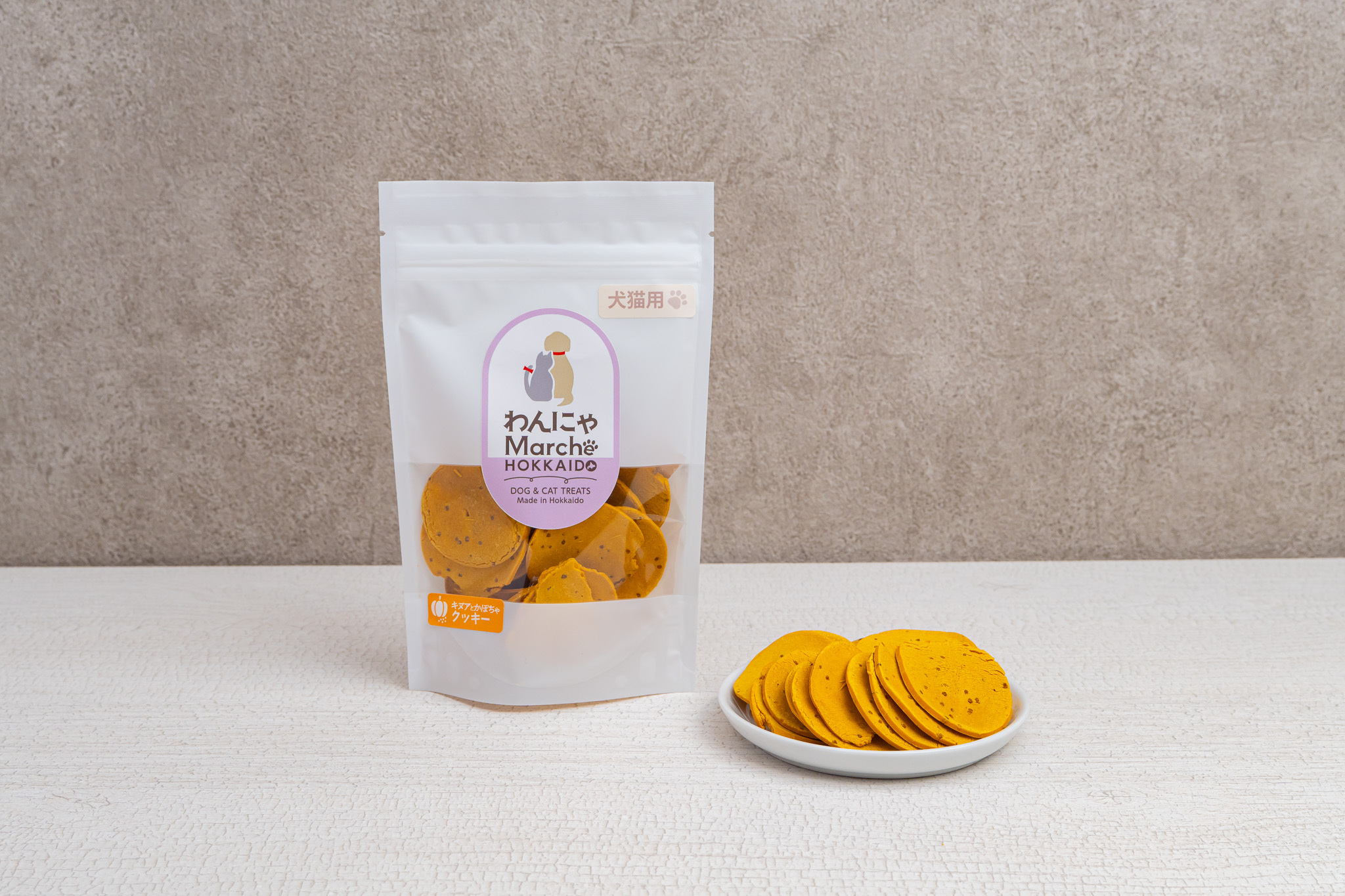 北海道産かぼちゃと米粉を合わせ、噛みごたえのあるしっかり硬めのクッキーに仕上げました。