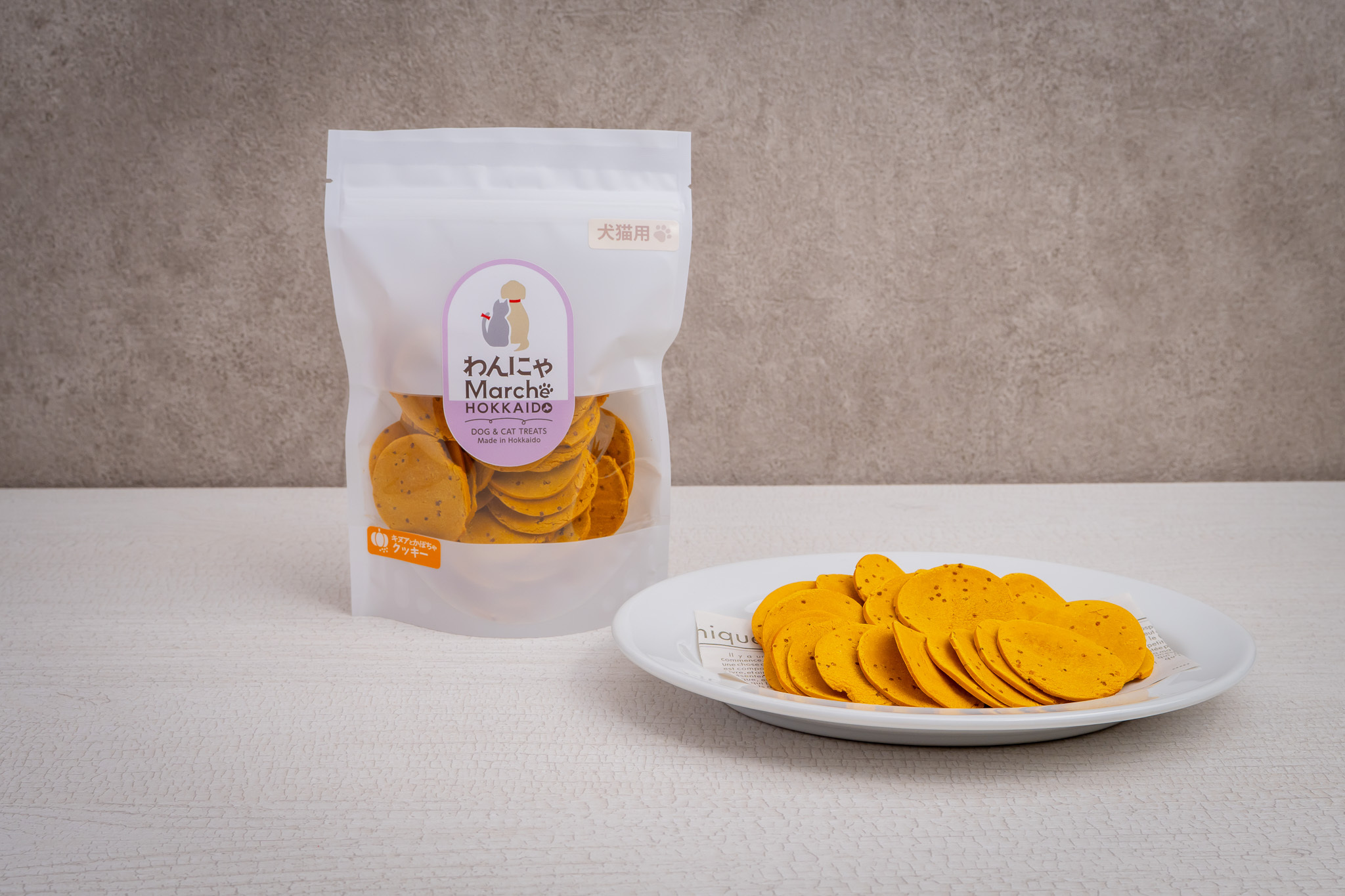 北海道産かぼちゃと米粉を合わせ、噛みごたえのあるしっかり硬めのクッキーに仕上げました。